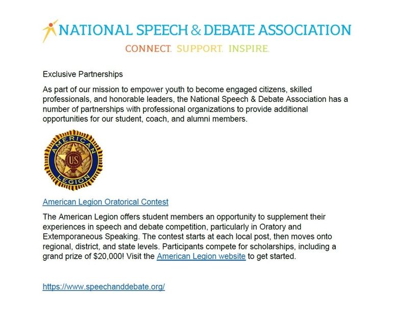 All Posts and District Legionaries, the Oratorical Constitution Speech Program starts today, and this information will provide your contestants the summer to prepare for the Post contest that will take place in December, followed by the District contest that should be held in January 2025.